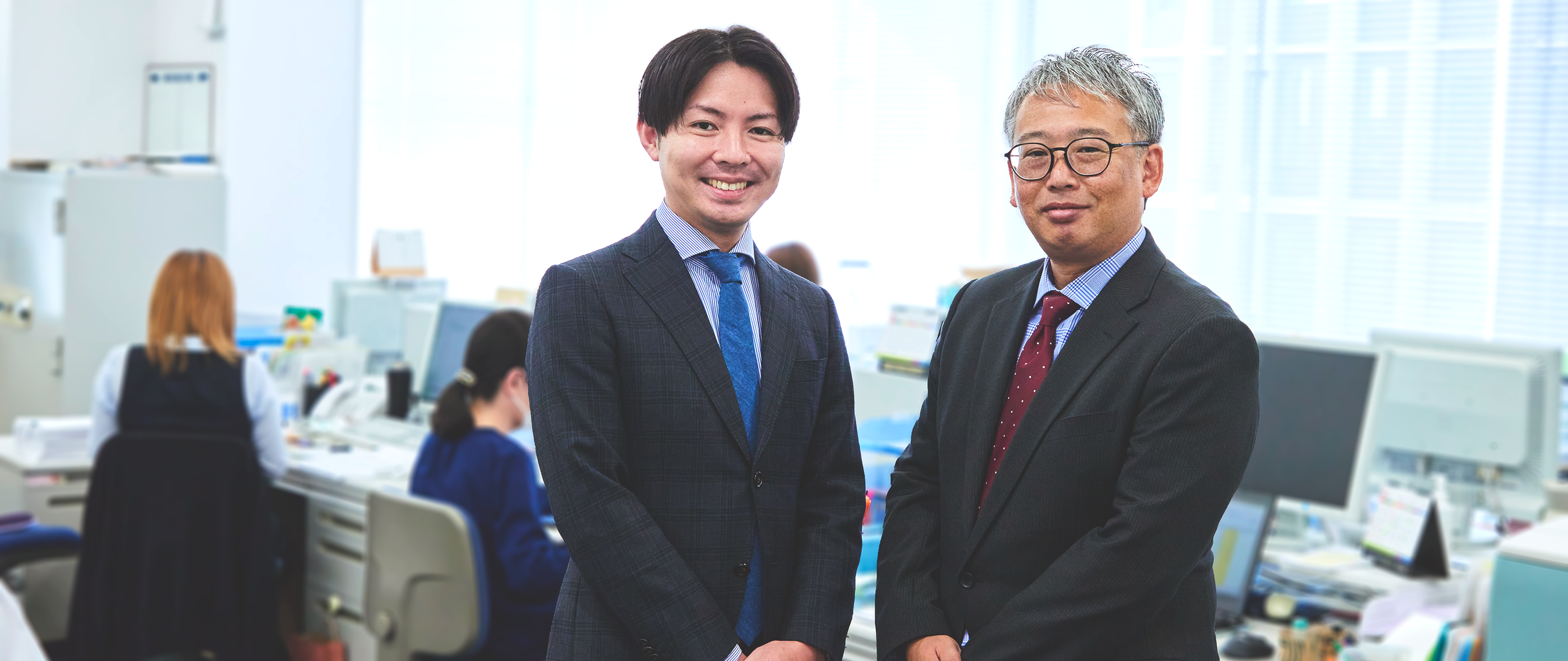 名古屋支店で営業最前線として働くY.Kさんと、営業歴20年のベテラン上司T.H 課長に、仕事内容や社風、これからの目標などを語ってもらいました。